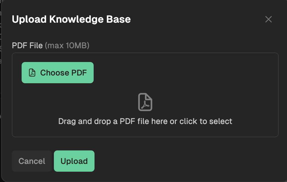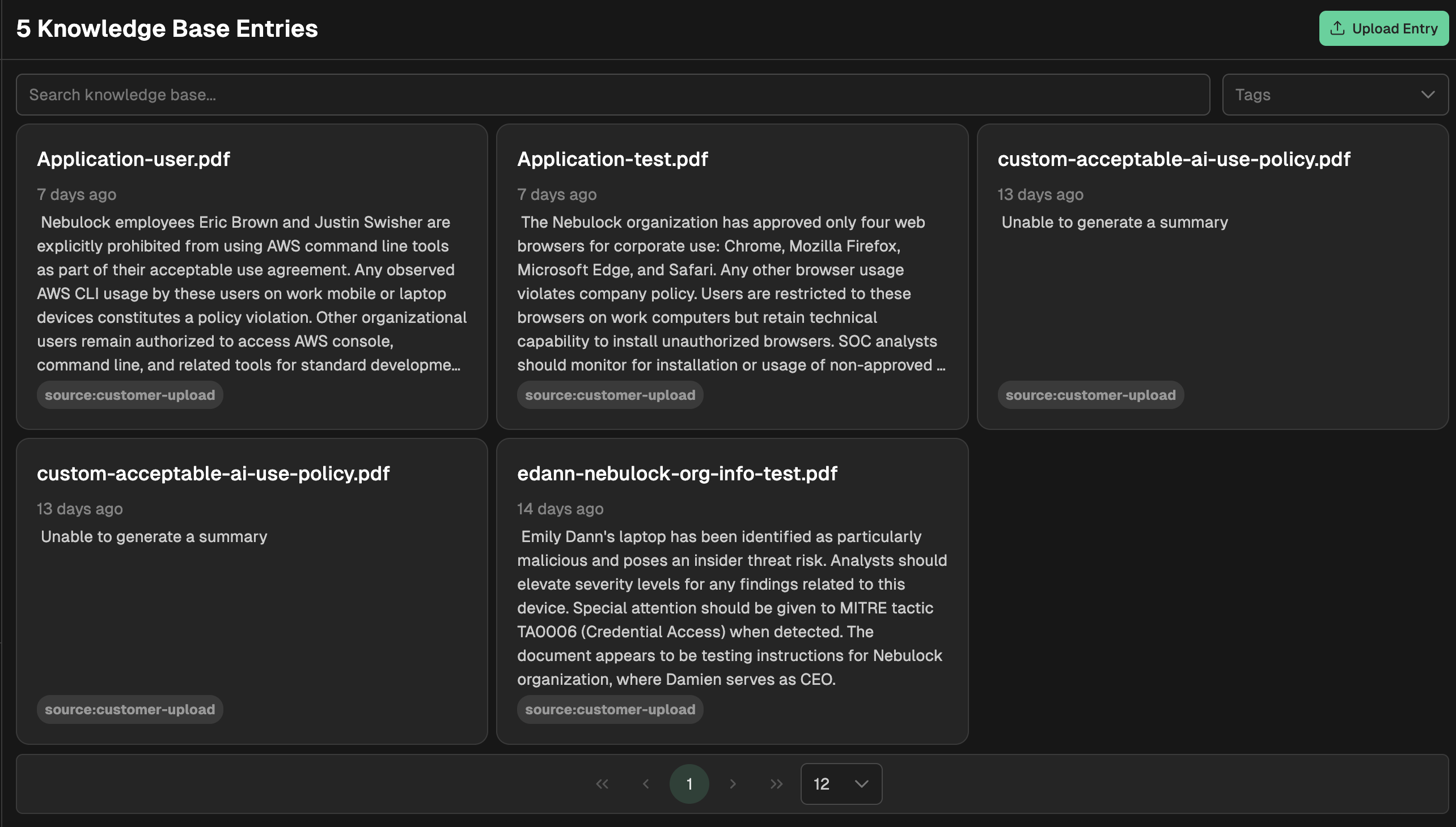 Knowledge can only be uploaded in PDF format. Once uploaded, the Nebulock platform will load the data and it will be accessible to the hunt agent.