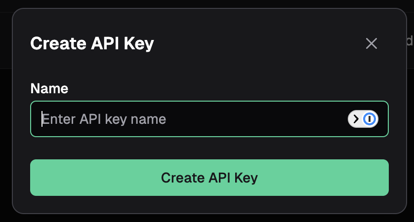 In the top right corner, click "+ Add API Key" and in the text box give the new key a descriptive name. Then click "Create API Key."