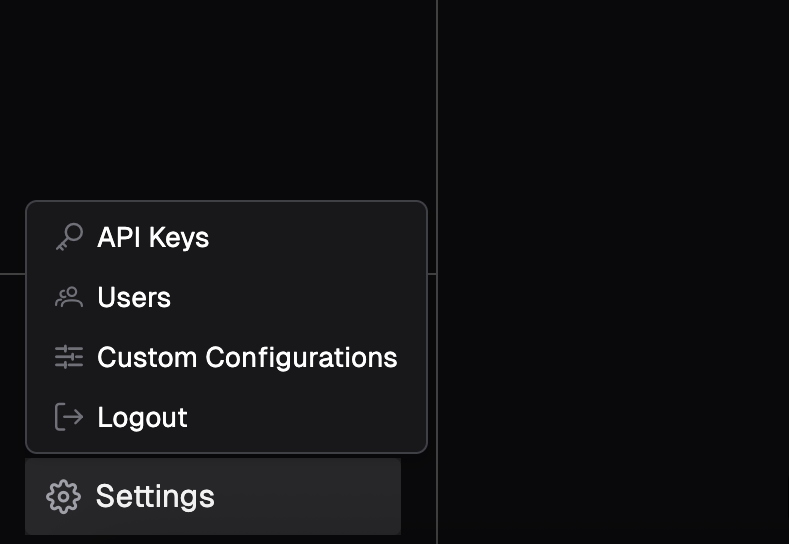Log in to the platform with a user that has administrative privileges, and under "Settings" select "API Keys."