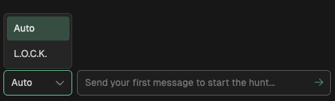 There are two hunt modes available to choose from in the platform. The first is Auto which is the default mode, and the second is L.O.C.K. mode.
