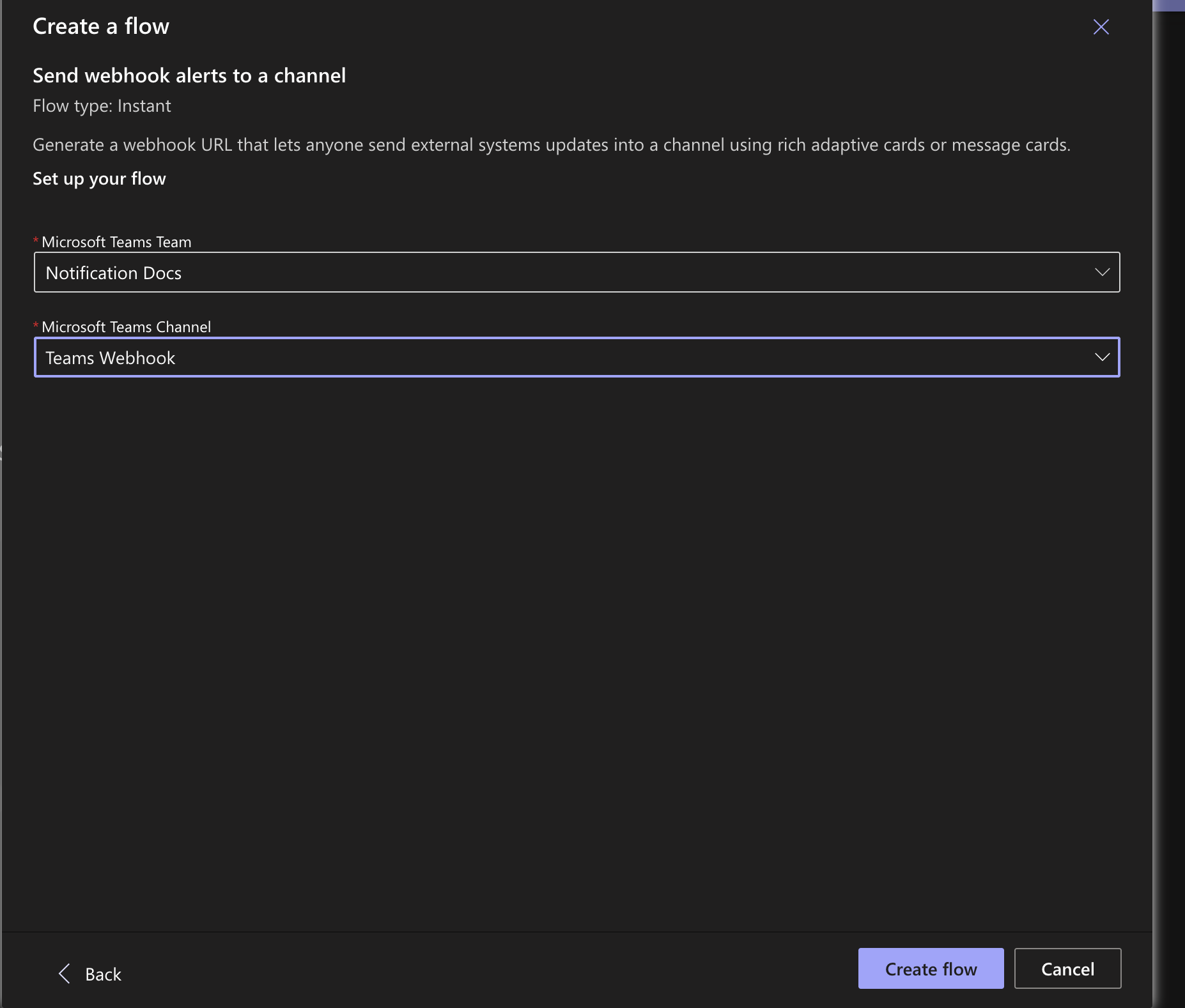 After clicking "Create Flow", copy the webhook URL.