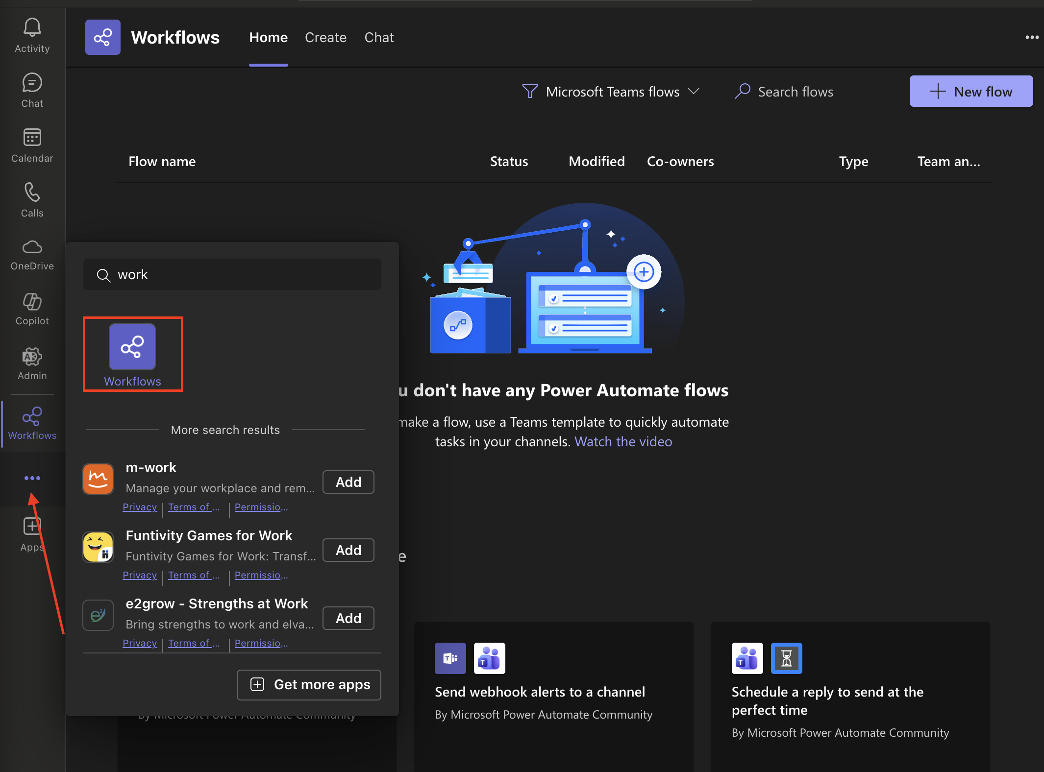 In your Teams application, navigate to the Workflows settings.