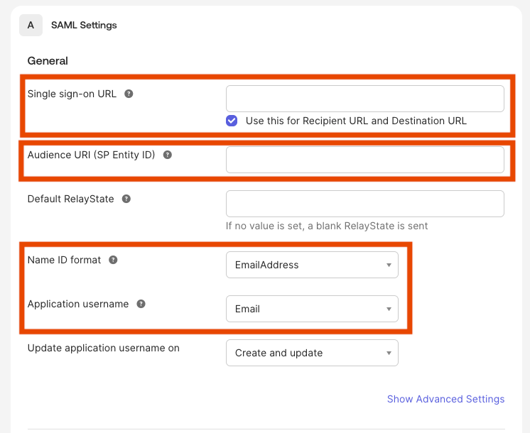 - For Audience URI (SP Entity ID), set the value to the Audience URI provided to you by Nebulock.