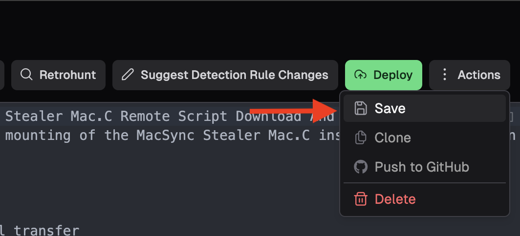 When creating a Detection Rule from Threat Reports, the agent will use the reporting along with any context you provide to create a rule. You can then make modifications/edits to the rule.